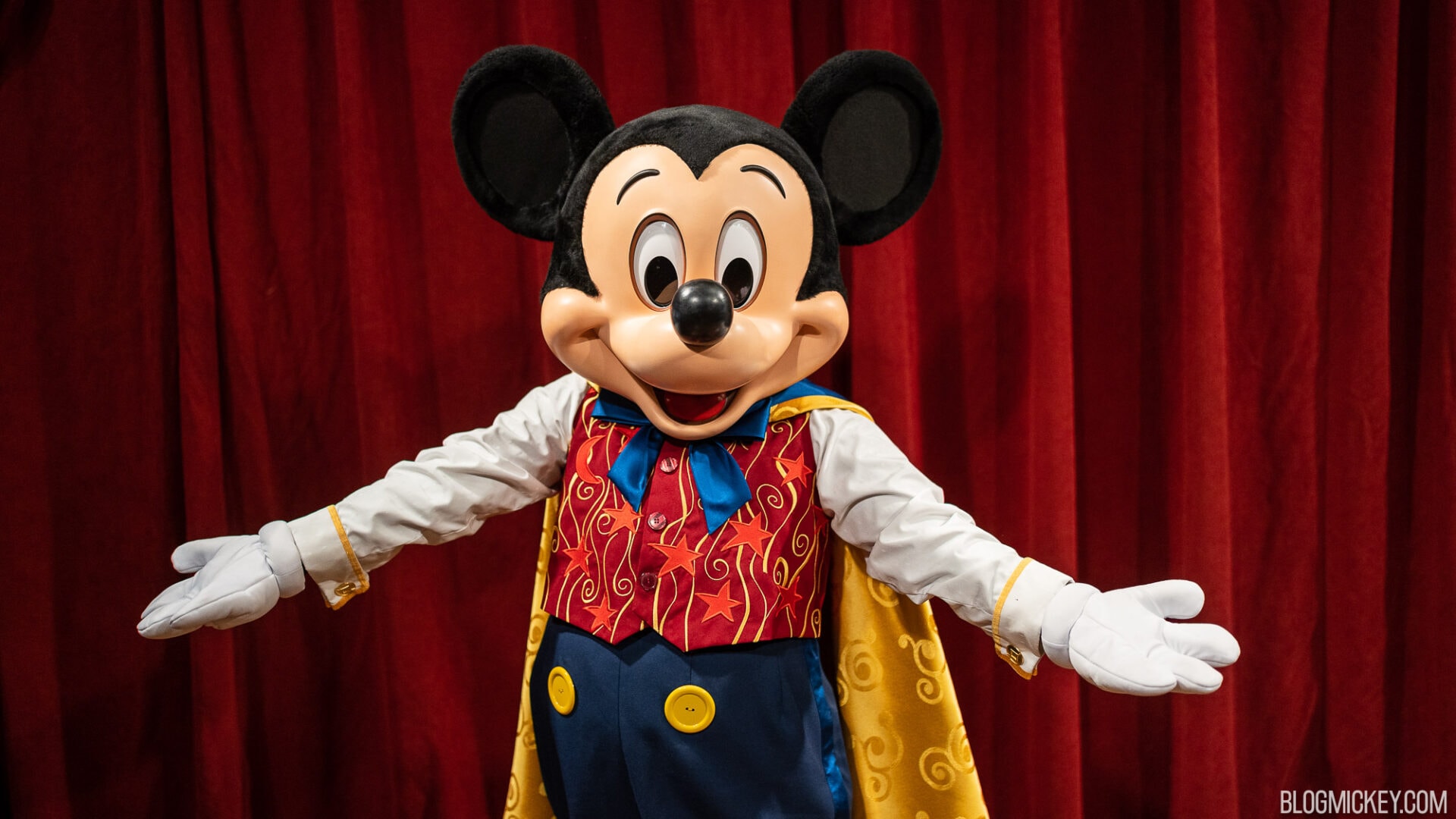 The Magic is no longer calling, but that doesn’t mean that the magic is gone! In fact, there is “new” magic in Town Square Theater in the form of a returning costume for Mickey Mouse. With the Walt Disney World 50th Anniversary now over, Mickey Mouse has ditched his EARidescent threads and returned as Magician Mickey in Town Square Theater. Here’s a look back at his 50th Anniversary look.
