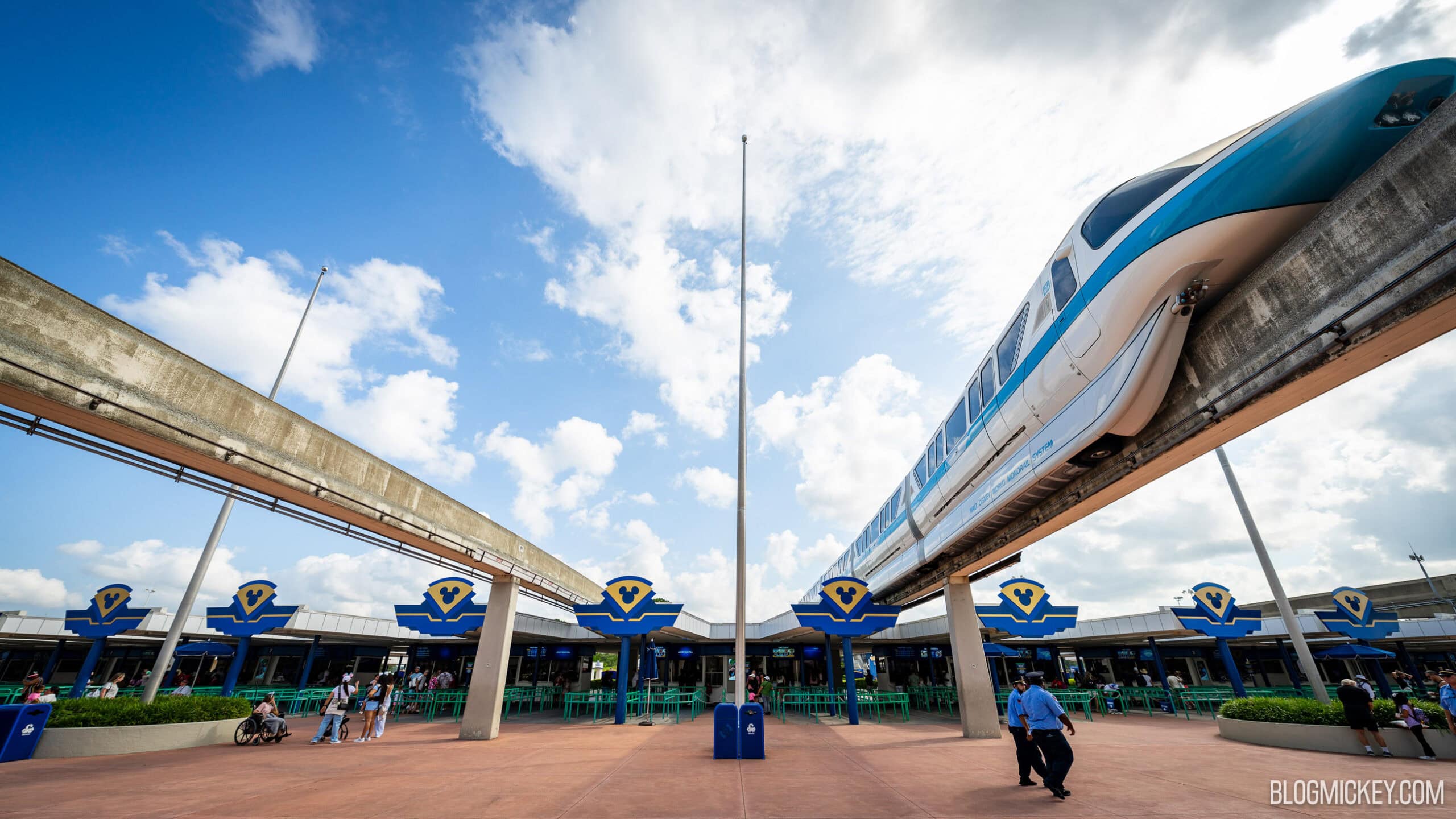Guests visiting the Transportation & Ticket Center gateway to Magic Kingdom and EPCOT may notice that the flags that typically fly at the location are missing. This is reportedly due to one of the flags getting tangled up in a monorail wheel after becoming dislodged from the flag pole during an afternoon thunderstorm with high winds.