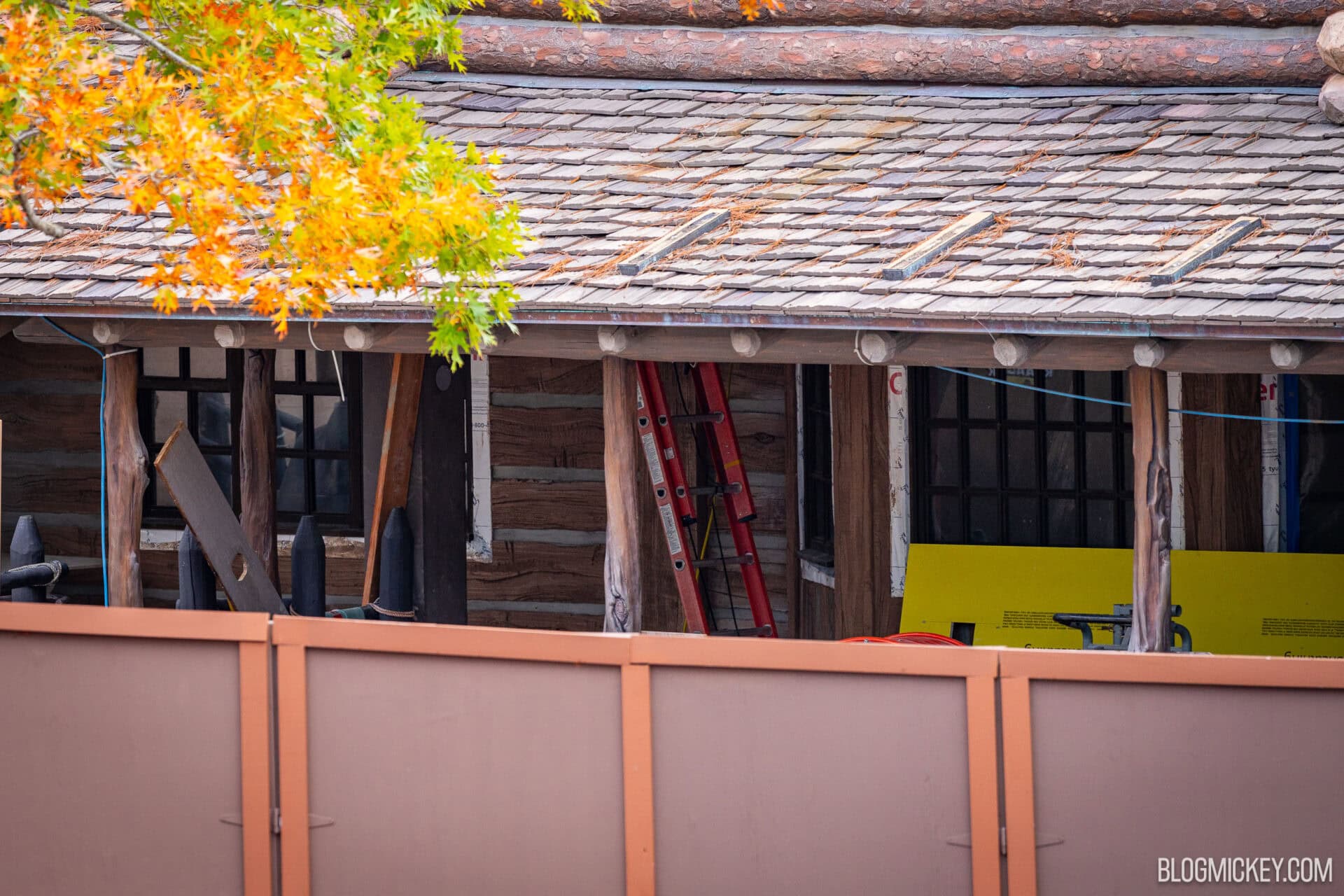 While visiting Magic Kingdom recently to check in on early preparations for a lengthy refurbishment of Big Thunder Mountain Railroad set to begin early next year, we also got a first look sneak peek at the McKim’s Mile House facade under construction. As you may know, McKim’s Mile House is the name for the Frontierland Disney Vacation Club lounge set to open in Summer 2025.
