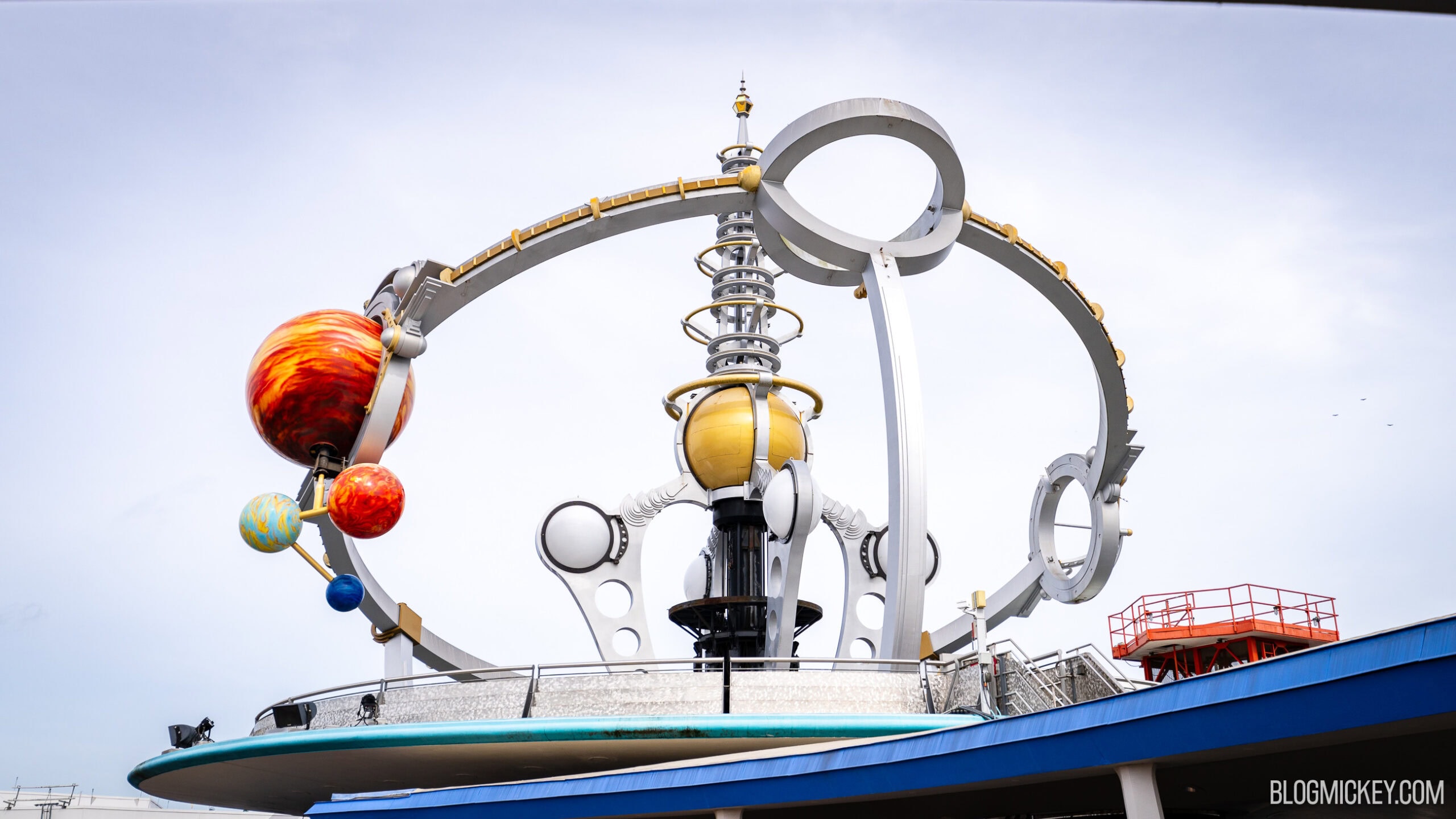 In our article showcasing the arrival of the crane, we also had a last look at the attraction before the refurbishment. There was quite a bit of rust, and even some plant growth some three stories above Tomorrowland. We also have some “before” photos of the planets, which we’ll sprinkle in with photos from our visit to Magic Kingdom this morning. Let’s take a look!
