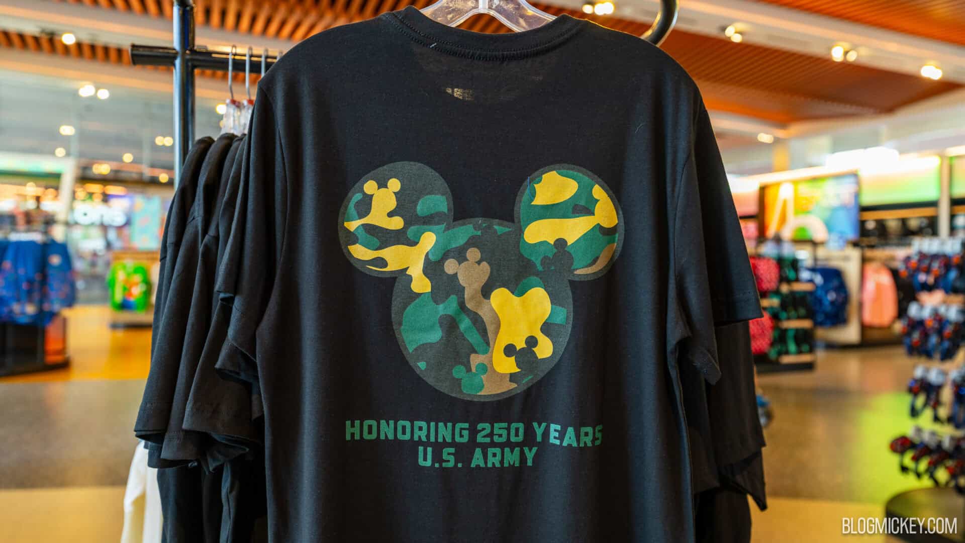Walt Disney World and the Disney SALUTE initiative have debuted a new shirt that celebrates the upcoming 250th Anniversary of the United States Army. We spotted the shirt available at multiple theme parks today, and stopped at EPCOT to take some photos.