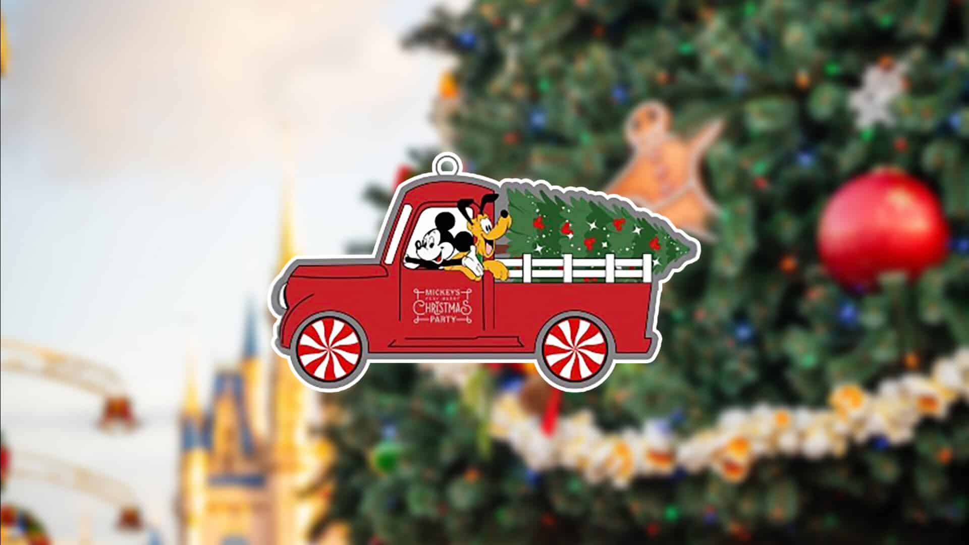 Ahead of the first Mickey’s Very Merry Christmas Party event of the 2025 Holiday Season, Walt Disney World has revealed the keepsake ornament that guests will be able to take home after the event. The ornament features Mickey Mouse and Pluto in a pickup, hauling a Christmas tree. The Mickey’s Very Merry Christmas Party logo is on the door of the ornament, and the truck has peppermint candy rims.