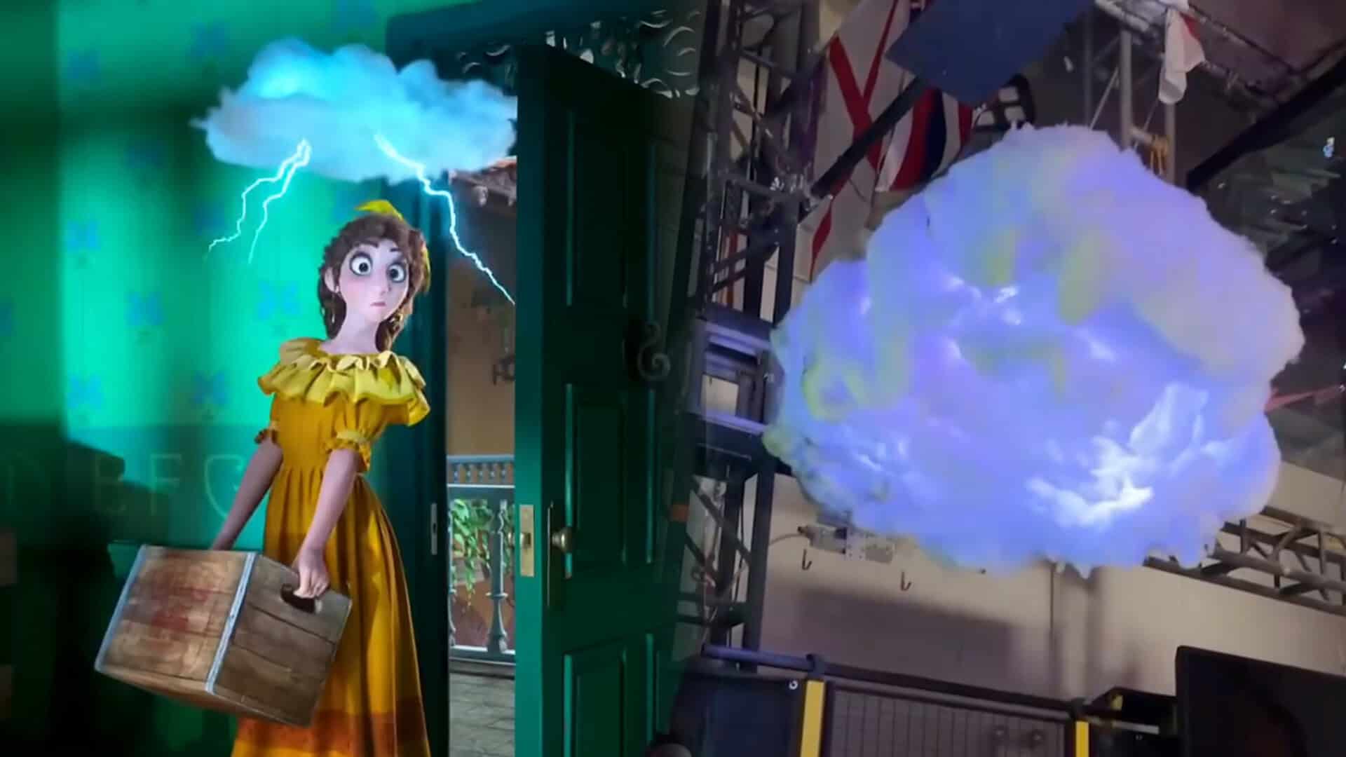 As you can see in the photos below, the storm cloud perfectly matches the size of the one being tested by the Walt Disney Imagineering Special Effects team. Given how convincing the “test” appears in the video, we’d be shocked if there wasn’t a scene in the new Encanto ride that utilizes this technology during a bit of conflict when Pepa’s emotions may be running a bit hot.