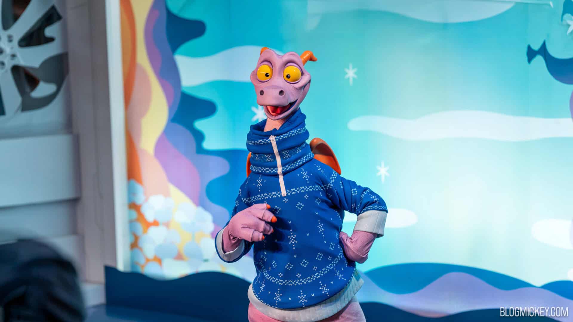 Figment Wears (Wrong) Ugly Christmas Sweater for EPCOT Festival of the Holidays Meet & Greet