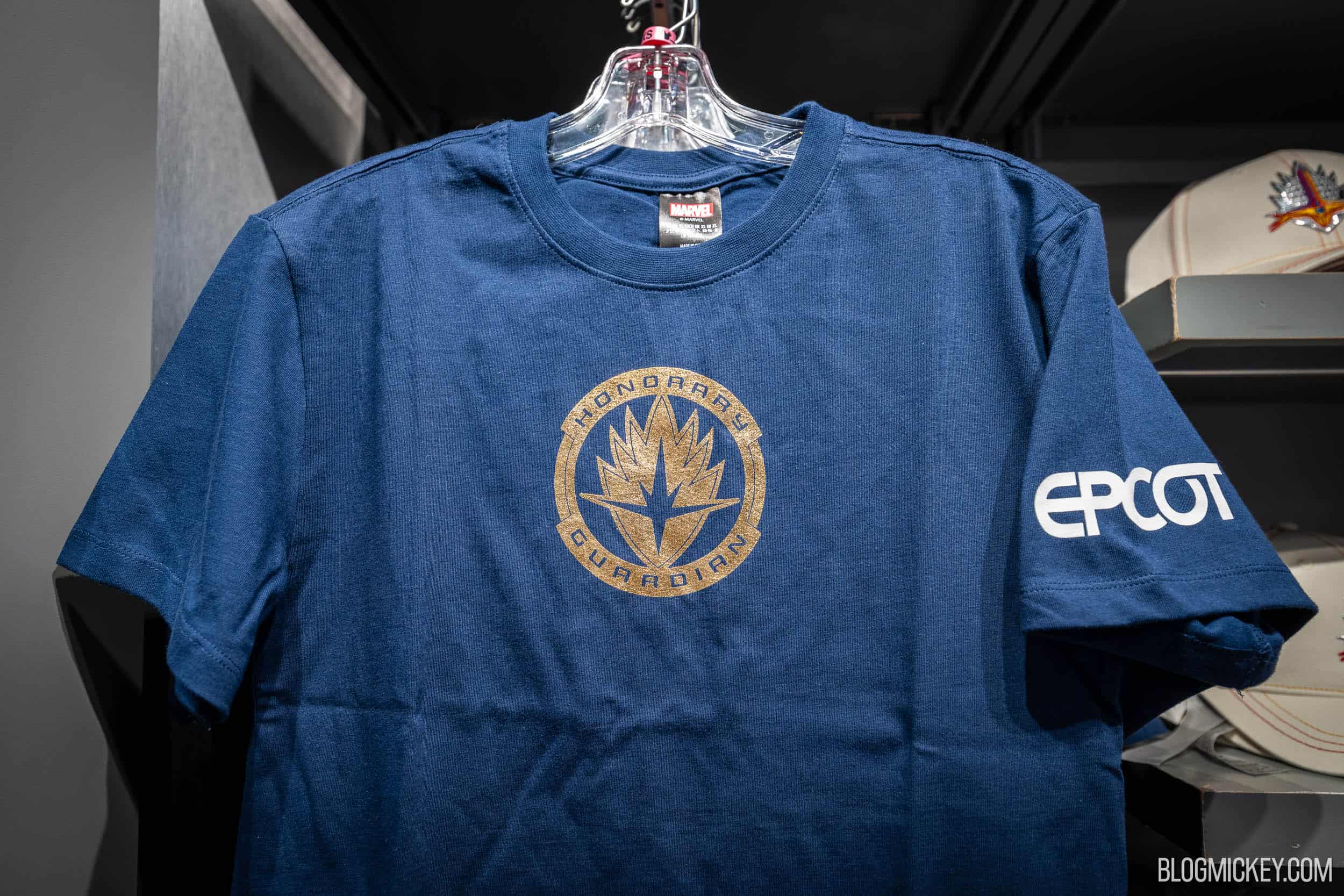 Here’s a look at the shirt, which features a golden Guardians of the Galaxy logo, complete with “Honorary Guardian” title. The EPCOT logo can be found on the left sleeve.