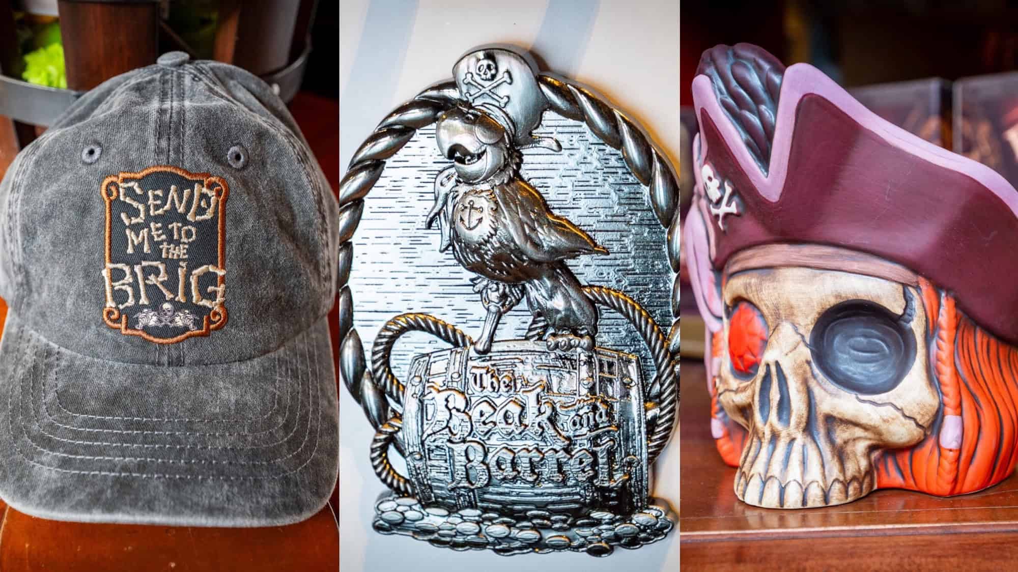 While visiting Magic Kingdom recently, we stopped into the Pirates of the Caribbean gift shop to find new Beak and Barrel merchandise. As you may know, the Beak and Barrel is a new bar at Magic Kingdom themed to the Pirates of the Caribbean franchise. While there was some merchandise available when the tavern opened last Summer, new merchandise has recently arrived! Here’s a look.
