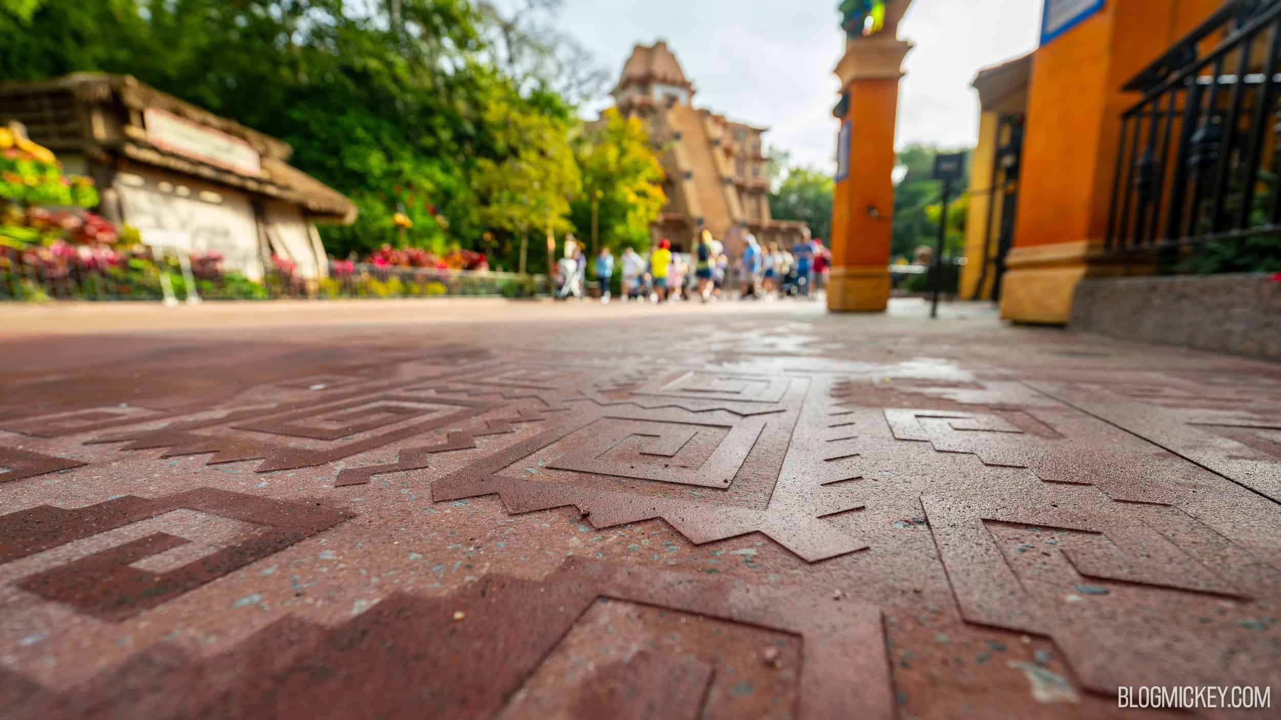 The Mexico Pavilion has received a lot of attention lately. Last year, Walt Disney World spent months replacing the standard concrete with a more themed pavement. With that project now complete, Walt Disney World is completing work on the themed pavement country dividers. It would stand to reason that other countries would eventually get a similar treatment, but we haven’t noticed any changes yet.