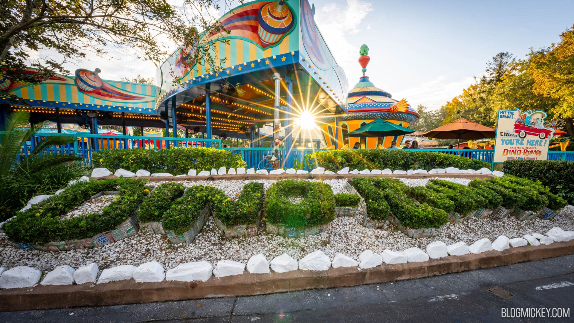 DinoLand USA is essentially split up into two or three parts. The Dino Institute is at the back of the land, and the Boneyard/Restaurantosaurus is in the front of the land. However, the middle of the land contained a section that was so unique it was polarizing – Chester & Hester’s Dino-Rama. Inside this roadside carnival, guests could enjoy a spinner ride called TriceraTop Spin and a wild mouse-style attraction called Primeval Whirl. Primeval Whirl closed permanently in 2020 and was demolished from September 2021 through November 2021.